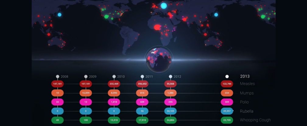 In just 70 seconds, this new data visualisation shows seven years of outbreaks around the world of diseases that could have been prevented by by vaccines.